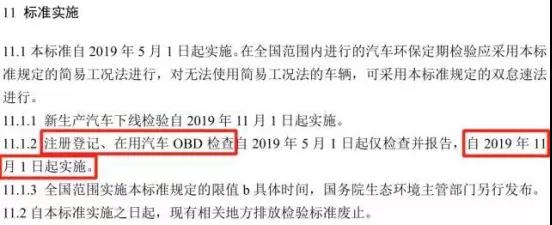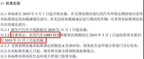 新標(biāo)準(zhǔn)由于修訂內(nèi)容較多,增加了OBD檢測(cè)等新內(nèi)容,因此標(biāo)準(zhǔn)實(shí)施采取分步走方式。